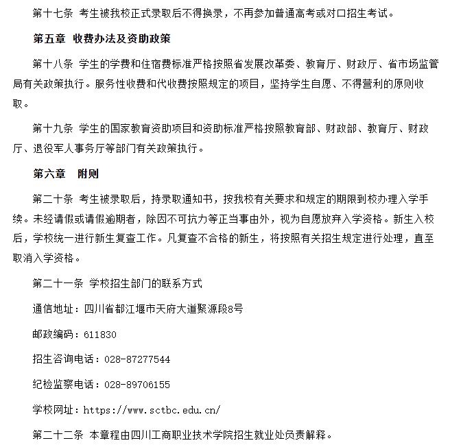 四川工商职业技术学院2025年招生章程